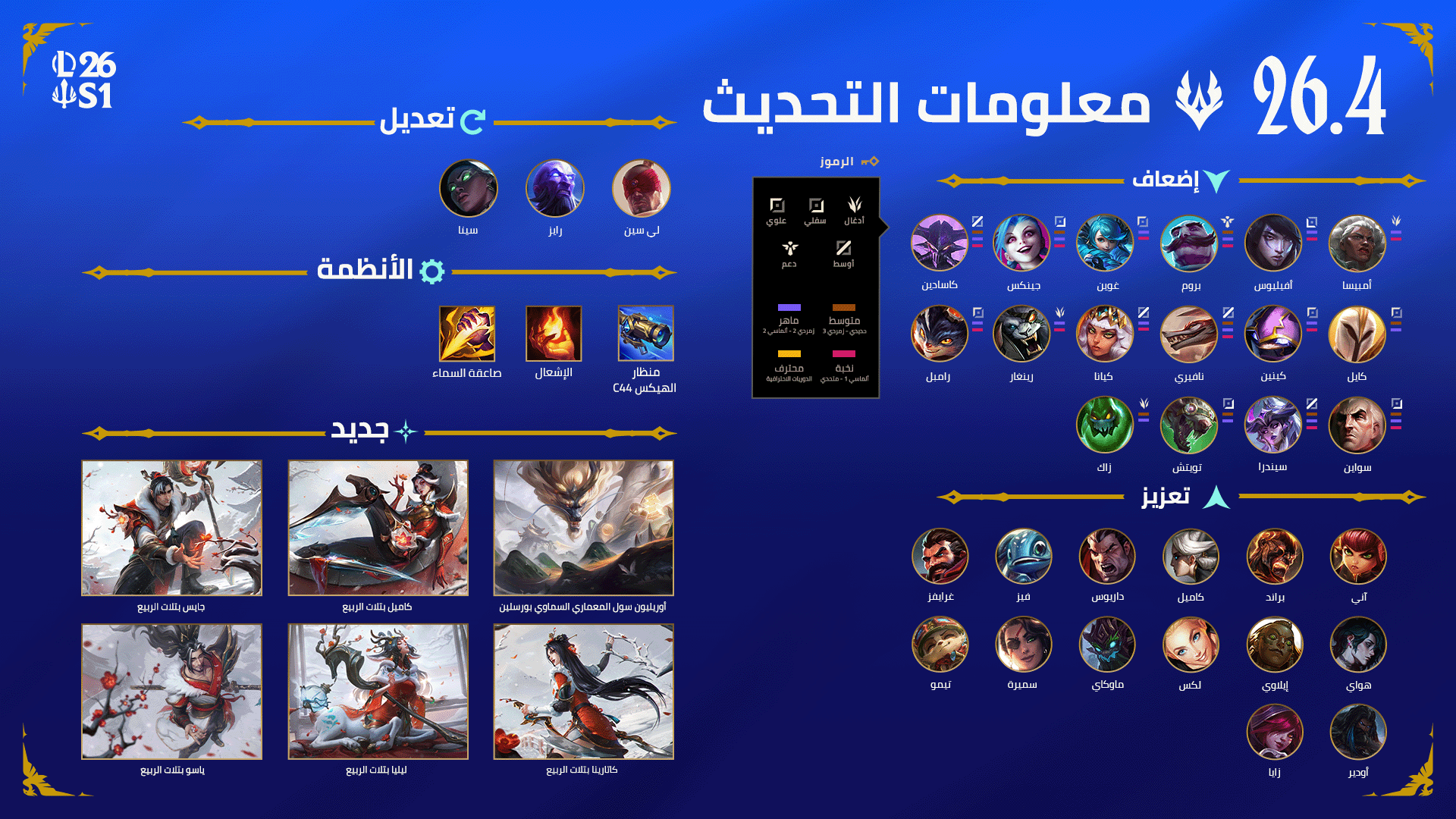 في تحديث هذا الأسبوع، سنبدأ عام الحصان بداية رائعة مع واحدة من أفضل الشخصيات التي زينت الريفت، ليليا! دون أن نغفل مجموعة من مظاهر بتلات الربيع الجميلة الأخرى، بالإضافة إلى ظهورٍ خاص لمظهر أوريليون سول المعماري السماوي بورسلين! سنتعمق في التغييرات الخاصة بسامنرز ريفت خلال لحظة، لكن لدينا أيضًا بعض الدعم لنمطي آرام الفوضى والحلبة في هذا التحديث. احرصوا أيضًا على الاطلاع على كأس أيونيا في كلاش التي ستحدث في آرام في هذا التحديث.