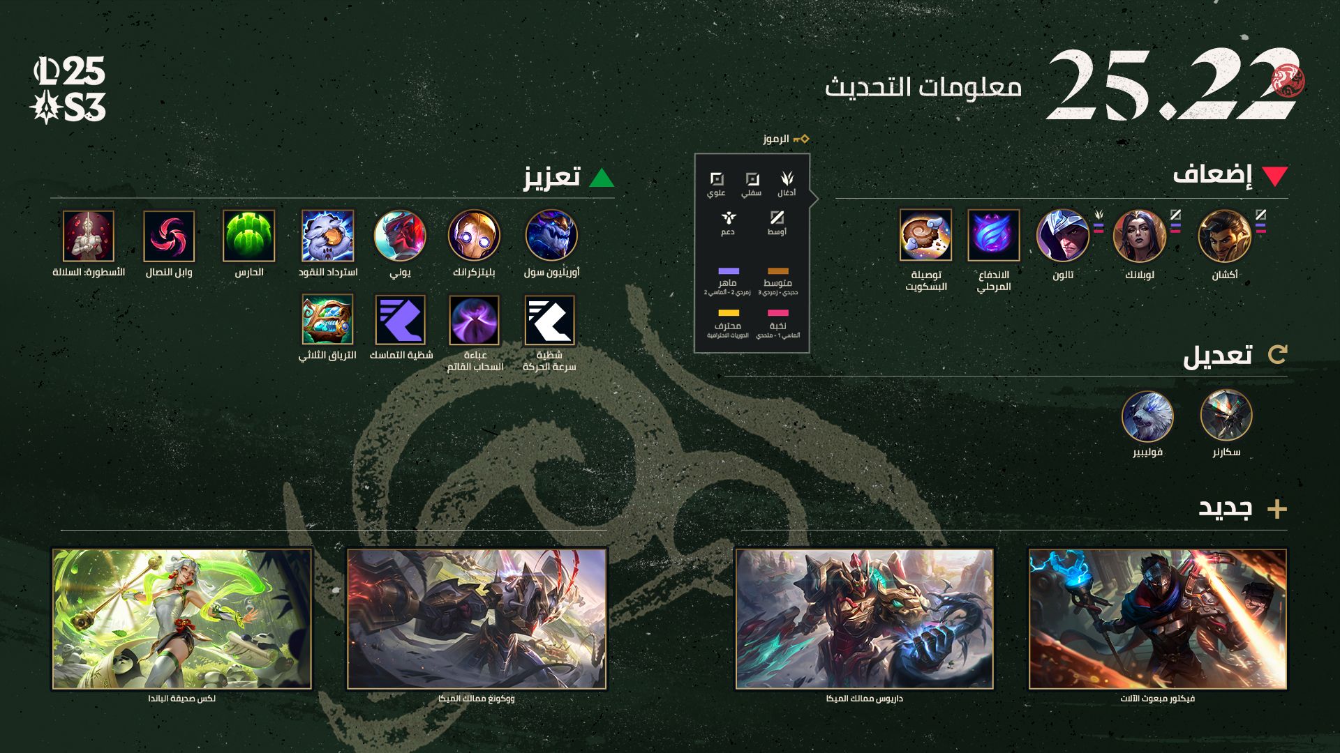 سيركز تحديث موازنة اللعبة في الغالب على الرونز هذه المرة، حيث سنضعف بعضًا من التي تحظى باستخدامٍ يفوق الطبيعي وسنعزز مجموعةً كبيرةً من تلك التي لا تنال التقدير اللازم. ألقوا نظرةً على الخيارات التي سيتم تعزيزها لعلّكم تجدون شيئًا جديدًا لبطلكم المفضل!