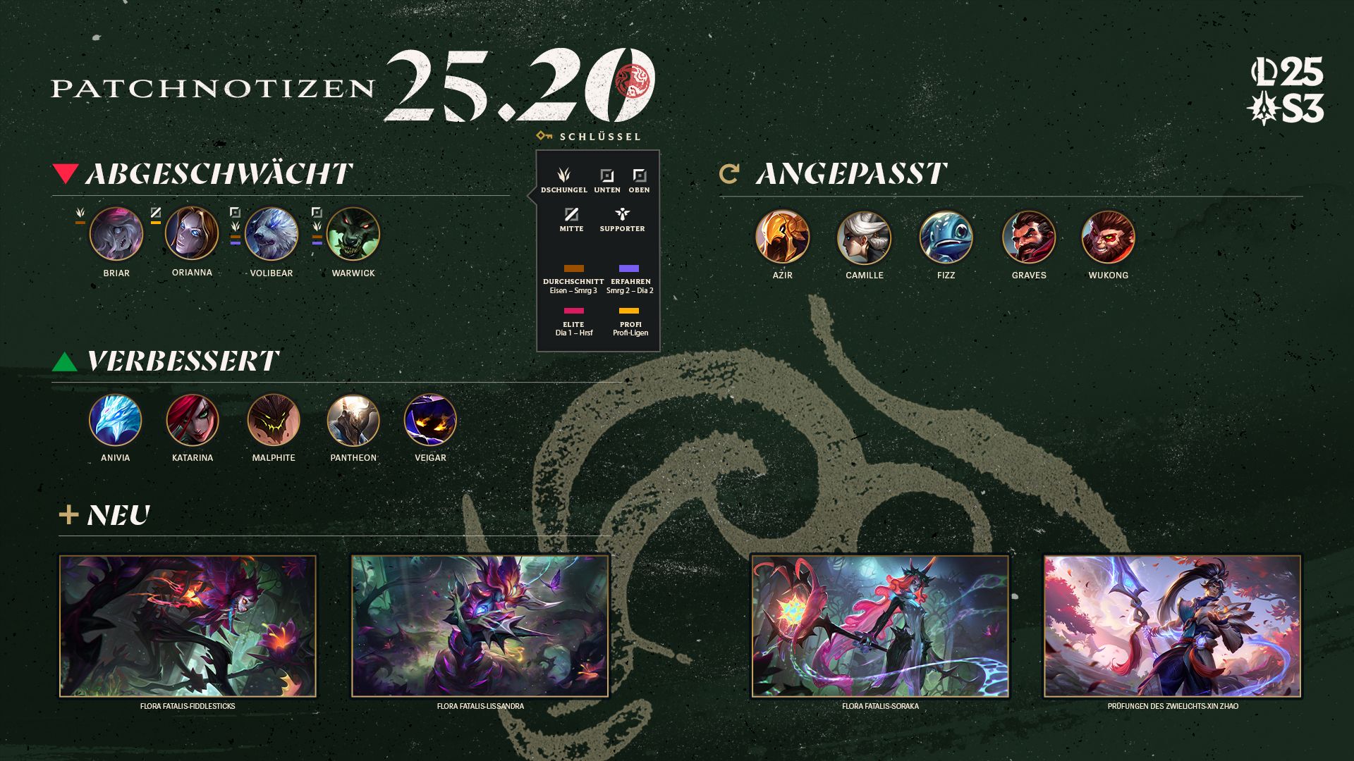 Willkommen zum offiziellen Patch der „League of Legends“-Weltmeisterschaft 2025! Da wir die meisten Änderungen mit Fokus auf die Profiszene bereits mit dem letzten Patch veröffentlicht haben, achten wir besonders darauf, dass die Änderungen in diesem Patch sowohl bei den Profi-Spielern als auch den gewöhnlichen Spielern Anklang finden. Aus diesem Grund spendieren wir einigen Champions Buffs, die im Gegensatz zu anderen Champions etwas schwach sind, wenn beide von erfahrenen Spielern gespielt werden. Gleichzeitig schwächen wir einige Champions ab, die auf niedrigeren Spielniveaus schon länger zu stark sind, und veröffentlichen einige Anpassungen, die sich auf das Profi-Niveau auswirken sollen, ohne dabei die Siegesraten in normalen und Ranglistenspielen zu verändern.