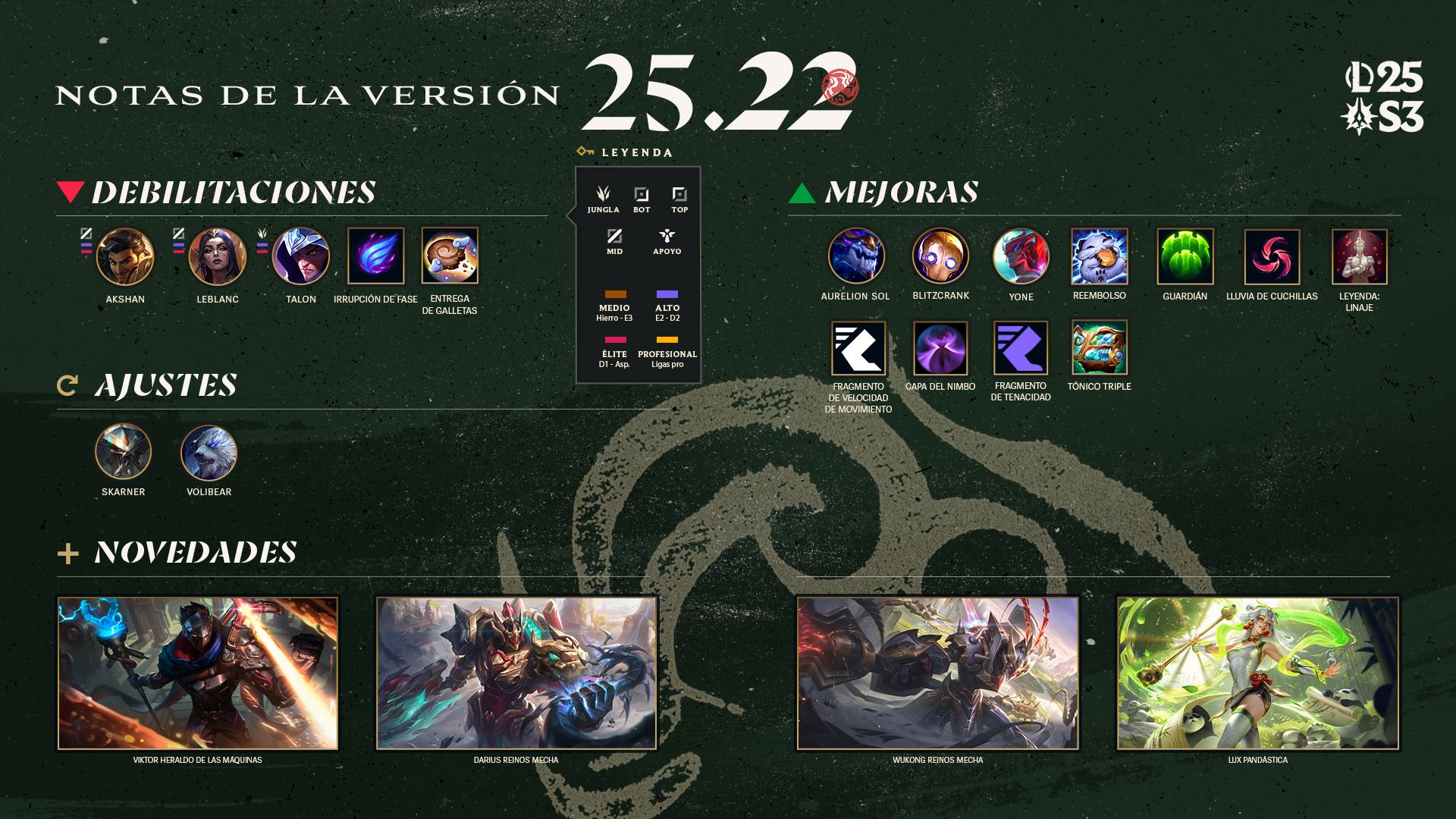 ¡Esto es un llamamiento a todos los jugadores de Viktor! Tras algunos ajustes para que fuera más similar a lo que muchos queríais, Viktor heraldo de las máquinas verá la luz en esta versión, y os lo vamos a regalar a todos los que lo adoráis: si tenéis el nivel de maestría 5 o más desde antes del 4 de agosto de 2025, os lo llevaréis gratis. Y si no es vuestro campeón principal todavía, nunca es tarde: Viktor heraldo de las máquinas estará disponible en la tienda a partir de mañana.