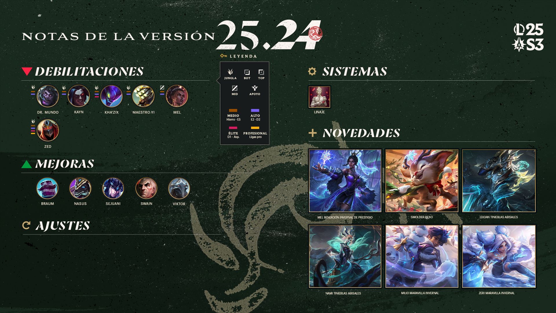 Además de los cambios que afectarán directamente a la experiencia de juego, también implementaremos los controles WASD (en algunas colas), la última temporada del split clasificatorio de la Temporada 3 de 2025, unos maravillosos aspectos invernales, mejoras para la selección de campeón, el retorno de Tu tienda y mucho más. ¡Seguid leyendo para descubrir más al respecto!