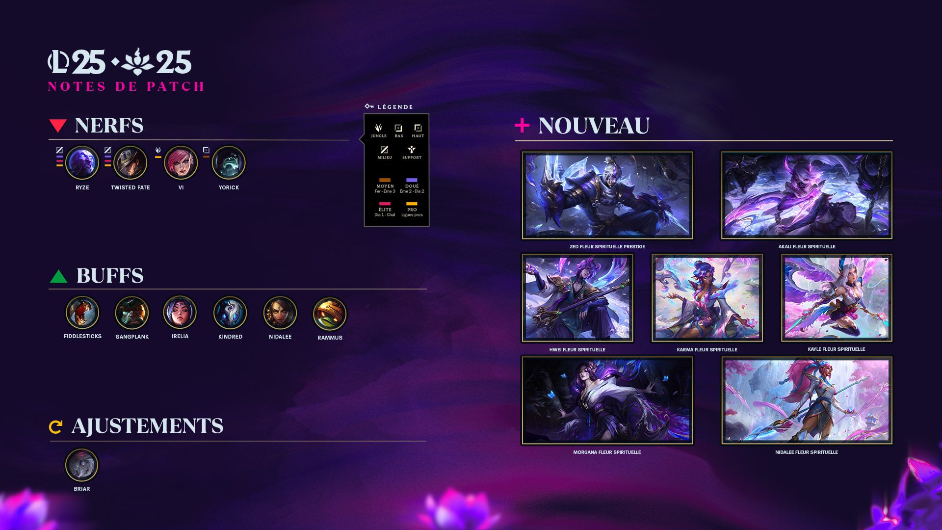 Le cycle de ce patch coïncide avec les vacances d'été de Riot, alors League of Legends (et Riot) sera en pause pendant une semaine pour nous permettre de recharger nos batteries, progresser dans nos passes HoL, et enchaßner les parties pour grimper comme jamais dans le classement. Cette pause se tiendra la semaine du 4 juillet. Cela signifie donc que le cycle du patch 25.13 durera trois semaines et que le patch 25.14 n'arrivera que le 16 juillet.