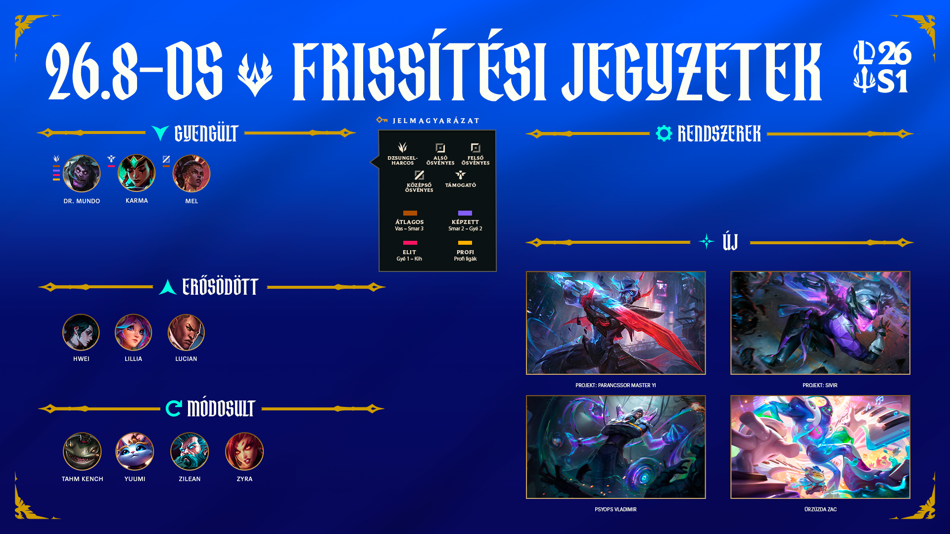 Az e heti frissítésben hozzányúlunk a mostanság legerősebb hősökhöz, például Melhez és Dr. Mundóhoz, és kisegítünk néhány botladozót, például Luciant és Hweit. Zyra és Zilean esetében gondoskodtunk arról, hogy ne tudjanak használhatatlan képességeket tanulni 1. szinten.