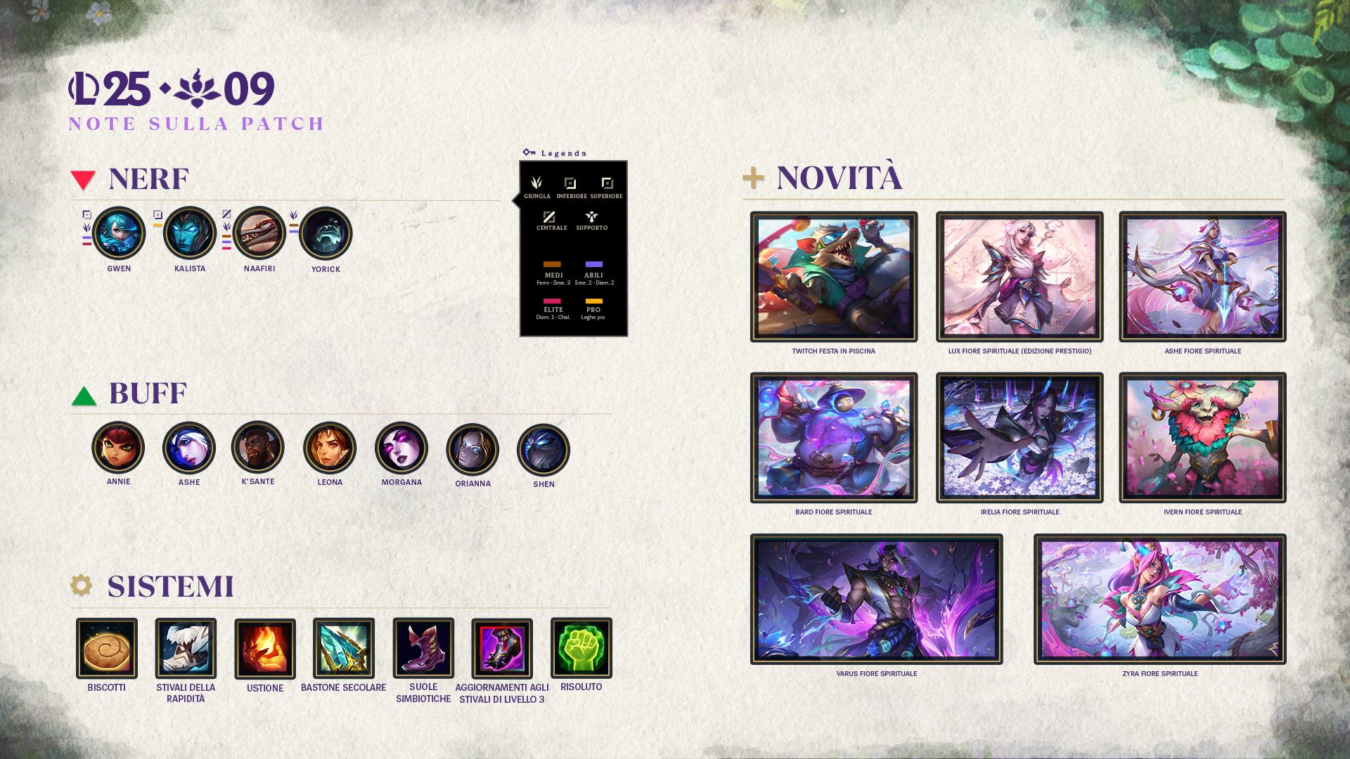 Con questa patch introduciamo parecchie modifiche importanti, come la nuova mappa Fiore spirituale, Atakhan dei rovi, modifiche agli obiettivi del Vuoto, rilevamento del feeding intenzionale leggero ("soft inting") migliorato, una nuovissima serie di aspetti Fiore spirituale, un nuovo Pass battaglia e tanto altro!