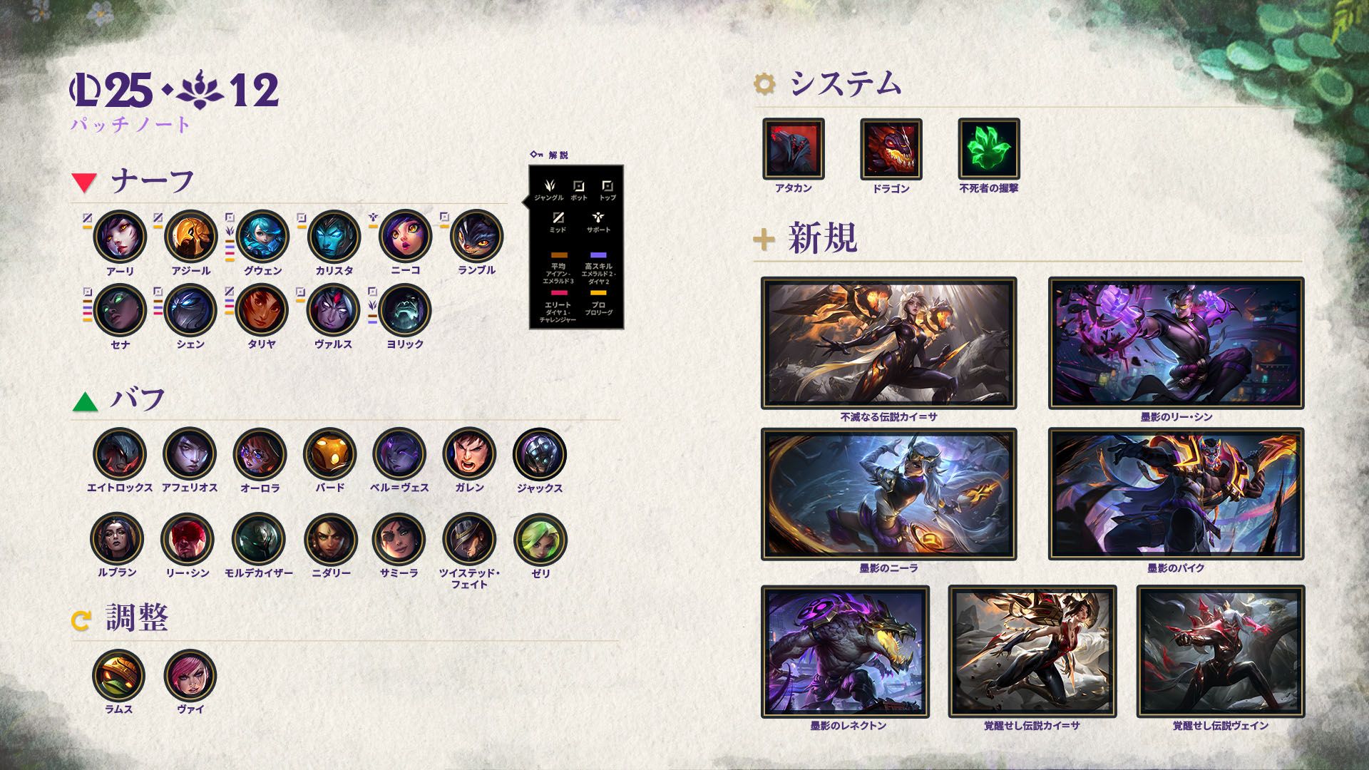 チャンピオンレベル1の攻撃速度が増加。セヴェラムの移動速度が増加。キャリブラムのダメージが増加。