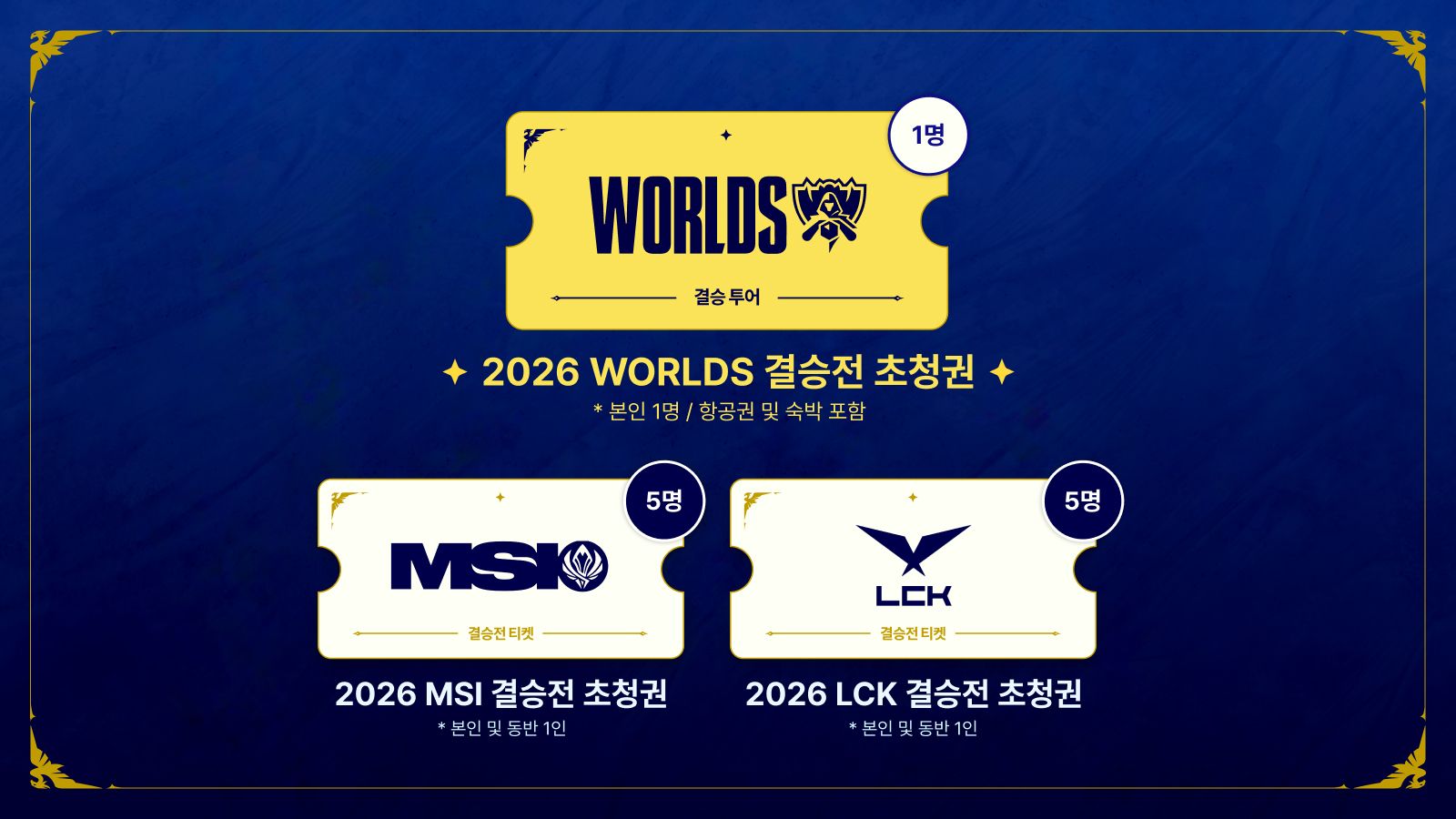 2026 WORLDS 결승전 1명 (항공권 및 숙소 포함)