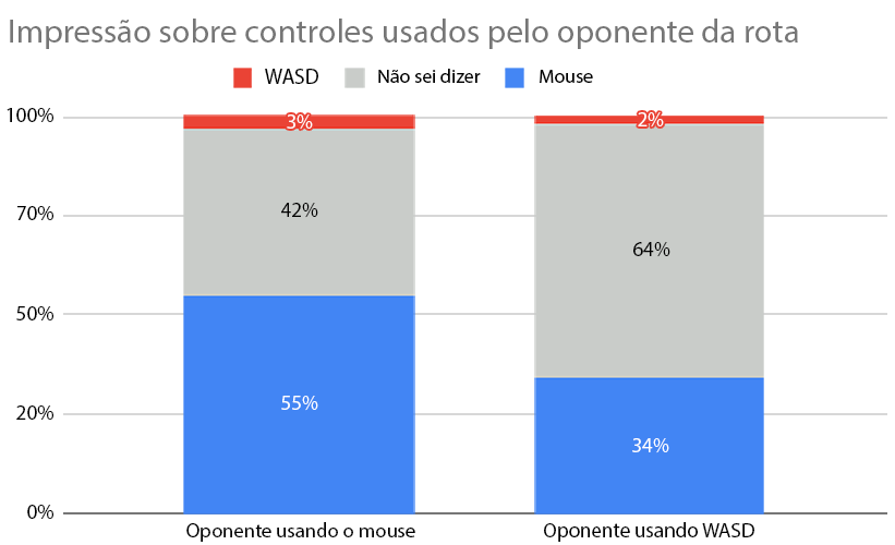 Essas pesquisas eram enviadas quando os jogadores terminavam partidas em que havia a presença de ambos os esquemas de controle. Em todas as filas que permitiam controle por WASD, vimos que praticamente não houve impacto na experiência de jogo: no geral, os jogadores não conseguiam identificar qual esquema de controle o oponente estava usando.