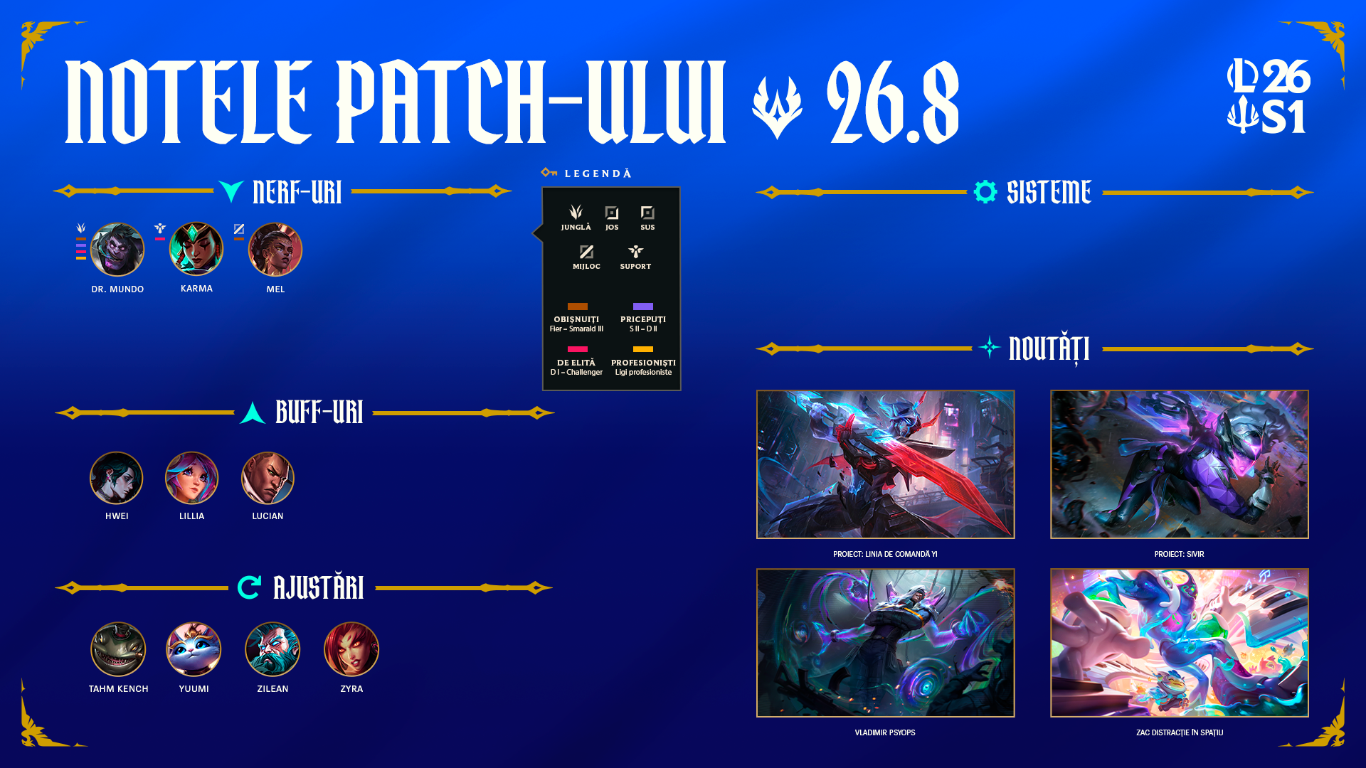 Sezonul ranked 1 din Riftul Invocatorului se va încheia în ultima zi a ciclului patch-ului 26.08, așa că, dacă aveți obiective de atins în acest sezon, asigurați-vă că o faceți acum, în acest patch! Baftă!