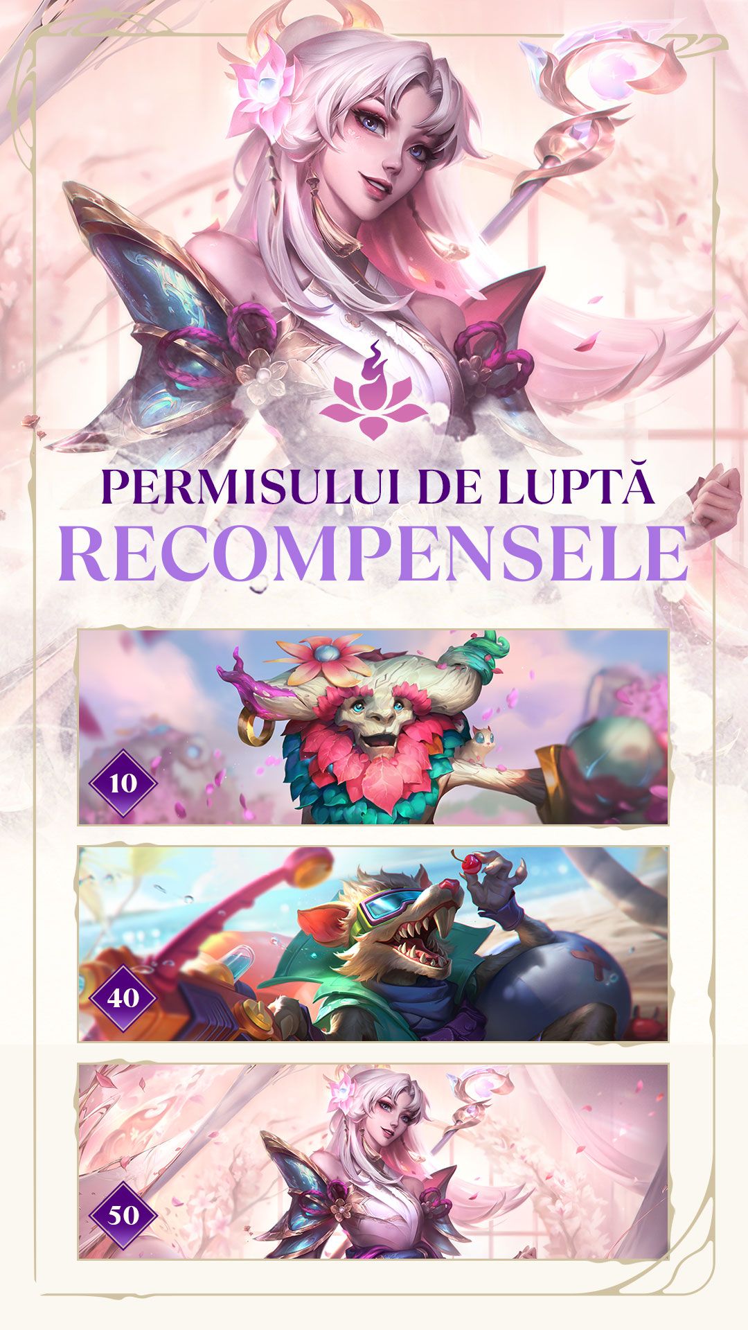 Împreună cu actualizarea Mugurii spiritelor, avem și un nou permis de luptă de sezon. Acesta include recompense precum Ivern, mugurul spiritelor, Twitch la piscină, Lux, mugurul spiritelor (Prestigiu), animații, iconițe și multe altele! Pentru mai multe detalii, vedeți lista de mai jos: