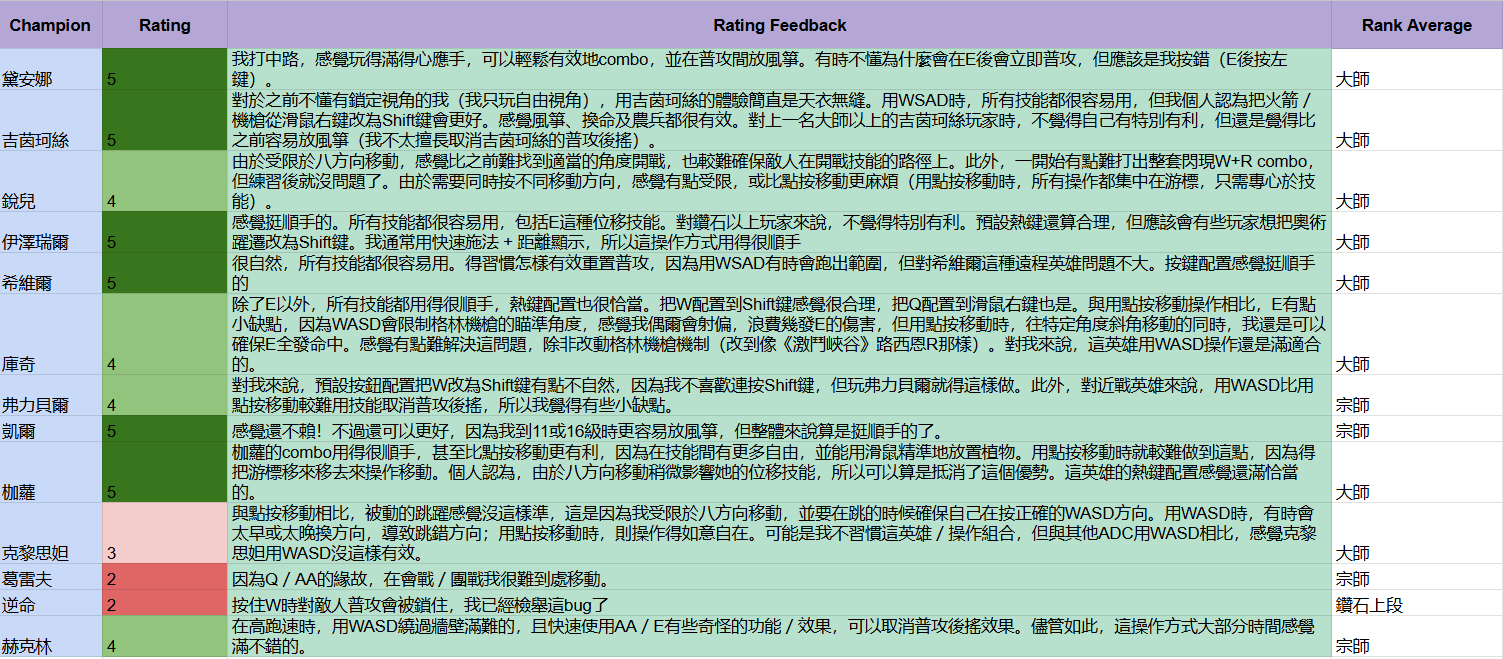 WASD於PBE推行的階段,使用WASD的玩家可以使用改良版快捷鍵系統,這樣我們在向所有人開放全新操作機制功能之前,才能確保一切妥當就緒。