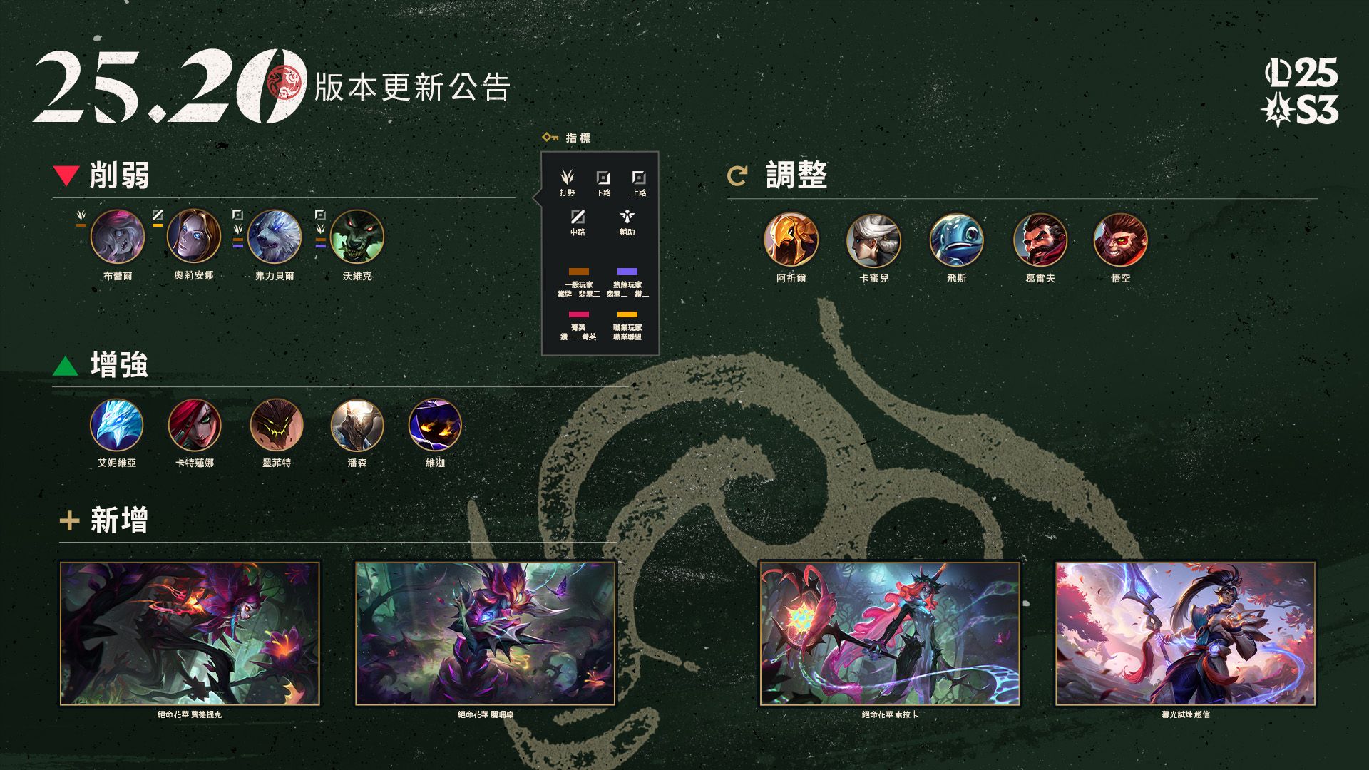 歡迎來到《英雄聯盟》2025世界大賽的正式版本!由於針對職業賽場的主要改動已於上個版本推出,此版本中,我們將更加謹慎地調整內容,力求在不影響一般玩家體驗的同時,也能兼顧職業選手的需求。因此,本次更新將包含:強化那些在資深玩家中表現明顯落後的英雄;削弱那些在初階玩家中表現過強的英雄,他們橫行無阻有一段時間了;另外還會實施一些針對職業賽場的調整,旨在平衡職業賽場的強度,同時盡量不去影響一般與積分對戰的總體勝率。